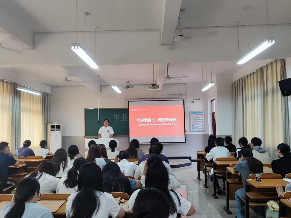 学院党总支以“青春心向党 奋进新征程”为主题召开专题教育会,通过活动强化仪式感教育:分享成长感悟、聆听专题党课、重温入党誓词。会计学院党总支副书记刘根讲授党课,深入解析党的创新理论,结合实际案例讲解如何在不同领域发挥党员先锋模范作用,鼓励毕业生党员将个人理想融入党和国家事业发展大局,以实际行动践行党的宗旨和使命。