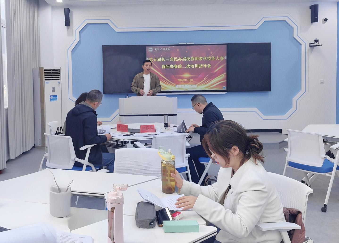 为进一步夯实参赛基础,以最佳状态迎接第五届长三角民办高校教师教学技能大赛省际决赛,11月4日,我校在格物楼智慧教室举办了赛前第二轮培训指导会。会议再次邀请教学创新大赛国赛一等奖获得者廖晓慧老师及校内多名资深专家组成指导团队,聚焦实战模拟,为参赛教师提供更具针对性的赛前赋能。副校长汪时珍、教务处相关负责人、相关学院教学副院长及全体参赛教师共同参与了本次会议。会议由教务处处长经庭如主持。
