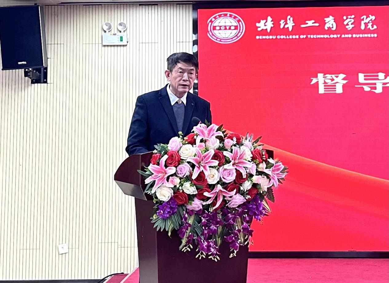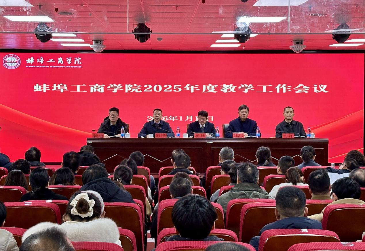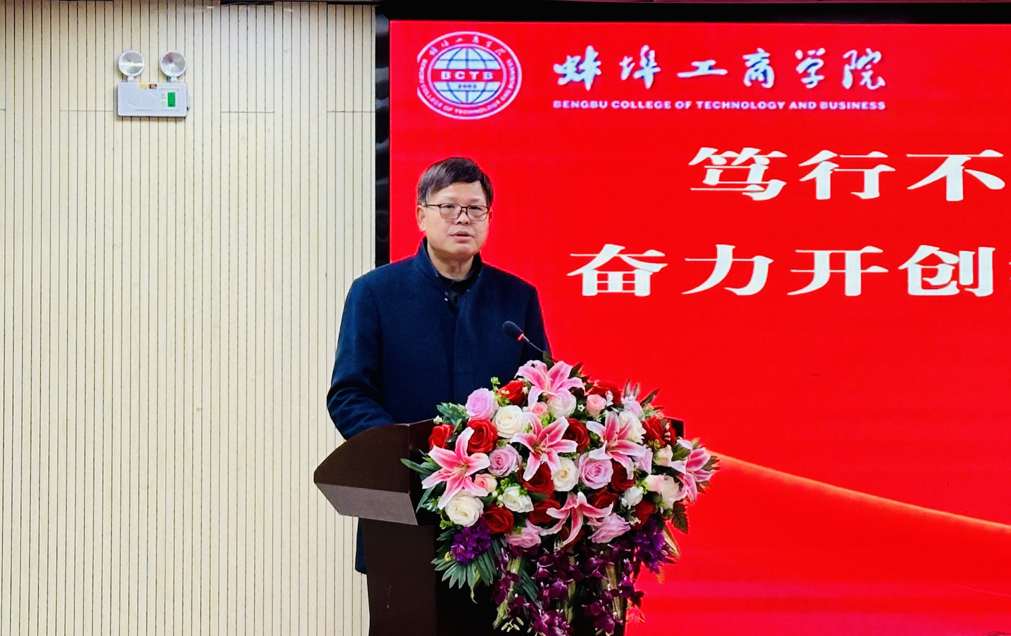 刘福成代表学校向大会作了题为《笃行不怠强根基 聚势谋远启新程 奋力开创教学高质量内涵式发展新格局》的工作报告,全面总结了2025年学校在落实立德树人根本任务、优化学科专业结构、落实新版人才培养方案、提升教师教育教学能力、强化应用型人才培养、夯实教育教学基础、着力提升生源质量、扎实推进迎评促建等八个方面的工作开展情况及取得的成绩,梳理了学校教育教学存在的问题和面临的挑战,并围绕打造“五育并举、全面育人”体系、需求导向优化专业布局新生态、深化教育教学改革、实施教师教育教学能力提升计划、强化实践创新、持续提升生源质量和就业质量、健全教学质量保障体系等七个方面进行了重点工作部署。他指出,学校正处在深化教育教学改革、迎接本科教学合格评估的关键时期,创建地方性高水平应用型大学的征程已经全面开启。全校上下要以党的二十届四中全会精神为引领,锚定教育强国建设目标,以“人工智能+”赋能教育变革,在产教融合、科教融汇的实践中锐意进取,勠力同心、砥砺前行,共同绘就蚌埠工商学院高质量发展崭新画卷,为建设教育强国贡献我们的智慧和力量!