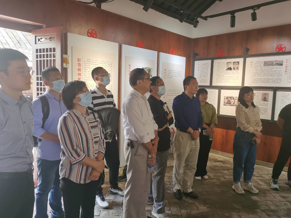 第一站是前往新四军淮上办事处旧址纪念馆进行参观。1940年7月,八路军第四纵队开辟淮上抗日根据地,进军怀远县龙亢,在此建立了抗日民主政权——淮上办事处。1941年“皖南事变”后,八路军四纵改编为新四军第四师,淮上办事处改为淮上行署,彭雪枫、黄克诚、张震、肖望东、刘震、滕海清等新四军将领,经常到淮上行署主客厅议事。纪念馆设立五个展厅,集中展示新四军在淮上抗战的实物和图片。其中,第一展厅“三进淮上”,展示“新四军、八路军进军淮上,杀日寇斗伪顽的光辉业绩”;第二展厅“雪枫故事”,介绍“共产党人好榜样——彭雪枫的生平事迹和革命故事”;第三展厅“淮上英烈”,展示淮上牺牲烈士传略和烈士名录;第四展厅“鱼水情深”,展示“新四军、八路军与淮上人民心连心的动人故事”;第五展厅“寻梦淮上”,展示“党和国家领导人,新四军、八路军老战士和社会各界参观纪念馆的图片和书法墨宝”。纪念馆讲解员为师生们讲述了东进淮上、四袭怀远城、办拂晓报、彭师长写对联、刘少奇成“伙夫”等故事,了解了彭雪枫将军在淮上抗日根据地领导新四军抗战的英勇事迹。通过参观学习,让师生们对新四军在本地区的抗日活动有了进一步的了解,深刻认识到抗战胜利的来之不易,进一步激发了爱党爱国的情怀。大家表示要铭记历史、不忘初心、牢记使命,以革命先烈为楷模,扎实立足自身的本职岗位做贡献。