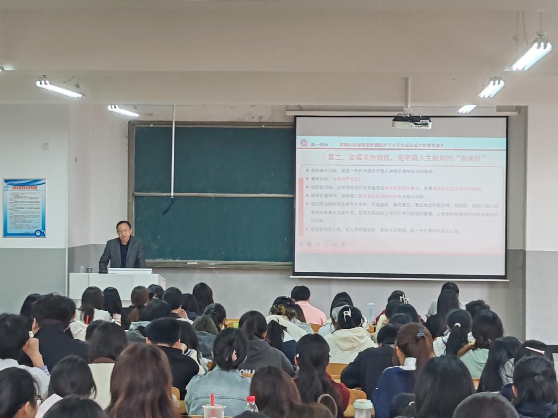 党课上,阮进兵紧扣主题,从加强党性锻炼的重要意义、“六有”大学生的时代内涵与党性要求、践行落实的具体路径等三个方面展开系统讲解。他强调,党性是党员立身、立业、立言、立德的基石,党性锻炼是终身的自我教育、改造与完善过程。对青年学子而言,加强党性锻炼是坚定理想信念的“压舱石”、明确人生航向的“指南针”、砥砺品德修为的“磨刀石”、提升能力素质的“助推器”,是成长成才的必由之路。