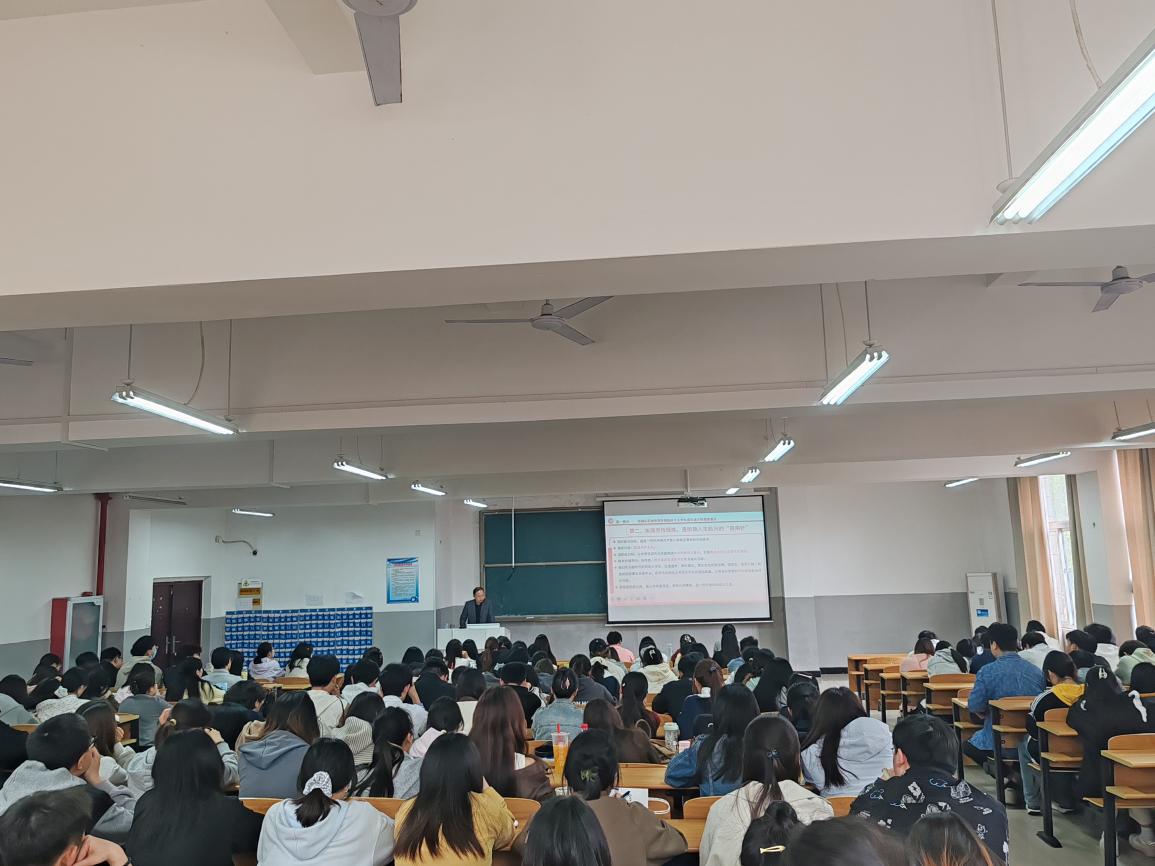 阮进兵深入解读习近平总书记提出的“有理想、有追求,有担当、有作为,有品质、有修养”的“六有”大学生内涵,指出这是党性要求在青年大学生身上的具体体现,是有机统一的整体。他结合学院学生考研考编、学科竞赛、志愿服务、参军入伍等实例,鼓励大家摒弃“佛系”“躺平”心态,将个人理想融入国家发展与民族复兴伟业。