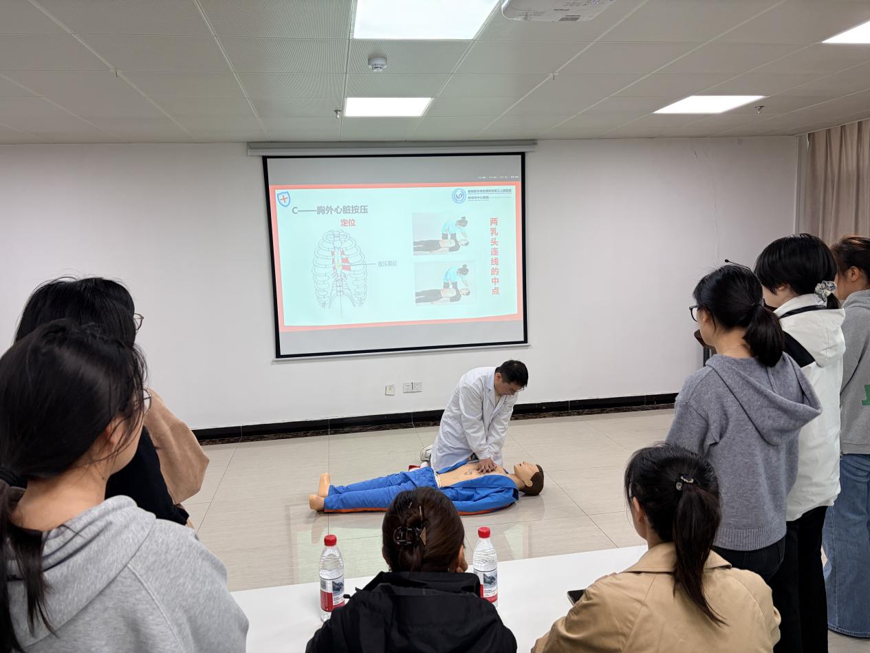 签约仪式后,蚌埠市第三人民医院行政第十一党支部党员代表、医院健康巡讲专家倪木兰为在场师生系统讲解了心肺复苏术(CPR)的理论知识、操作要领及注意事项。田硕护士长结合人体模型,将胸外按压、开放气道、人工呼吸等关键步骤逐一操作示范。同学们踊跃上台,在医护人员指导下进行模拟演练。党员医护人员向同学们发放了急救包,将急救知识与健康关爱一同传递。