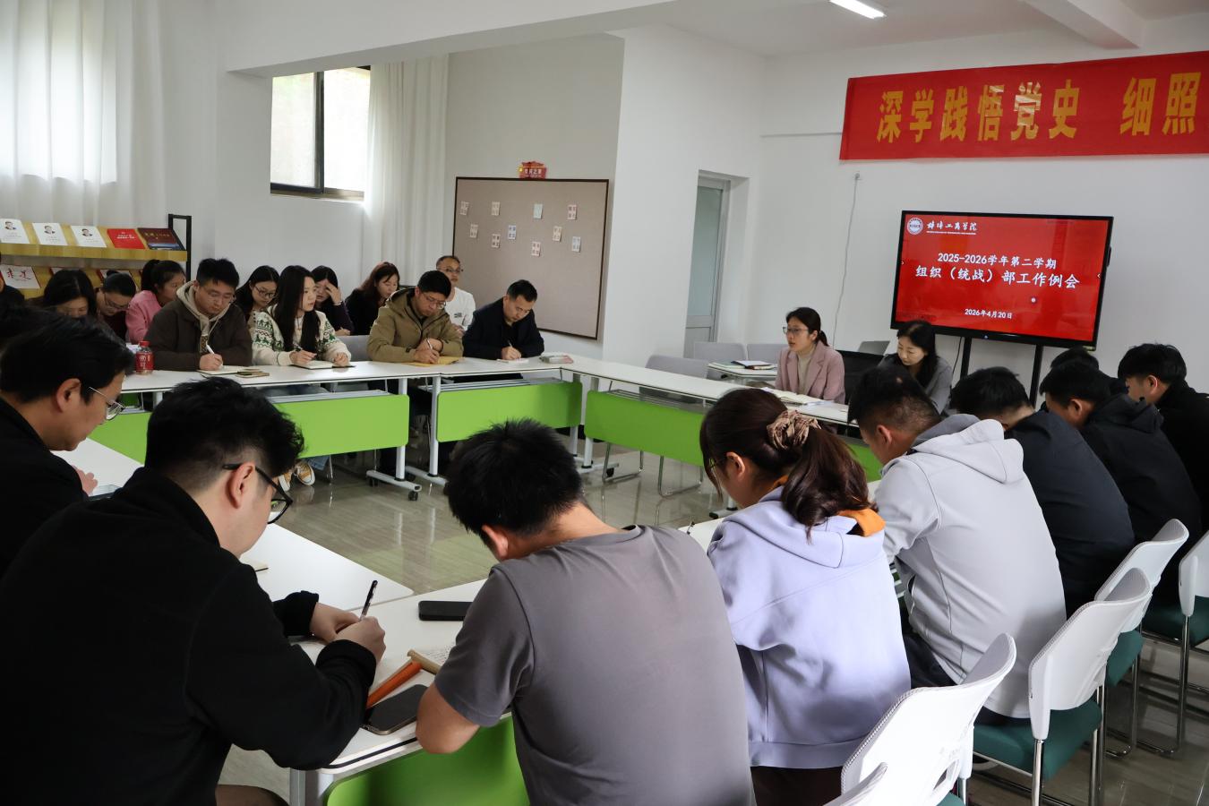4月20日下午,组织(统战)部在“一站式”学生社区“党员之家”活动室召开本学期第一次党务工作例会。各学院党总支秘书、全校党支部书记、各学院党务工作联络员参加会议。会议由组织(统战)部部长刘艳主持。